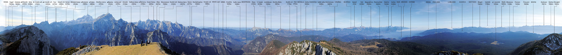 Vse gorske užitkarje bodo tako poleg že prej omenjenega poglavarja Julijcev razveseljevale še panorame z vrhov Jalovca, Škrlatice, Bovškega Gamsovca, Rjavine, Kanjavca, Krna, Mangarta, Rombona, Razorja, Debele peči, Stenarja, Špika, Mahavščka, Velikega Draškega vrha, Viševnika, Montaža, Velike Črnelske špice, Male Mojstrovke, Prestreljenika, Pihavca, Viša, Velikega Špičja ter Prisojnika.